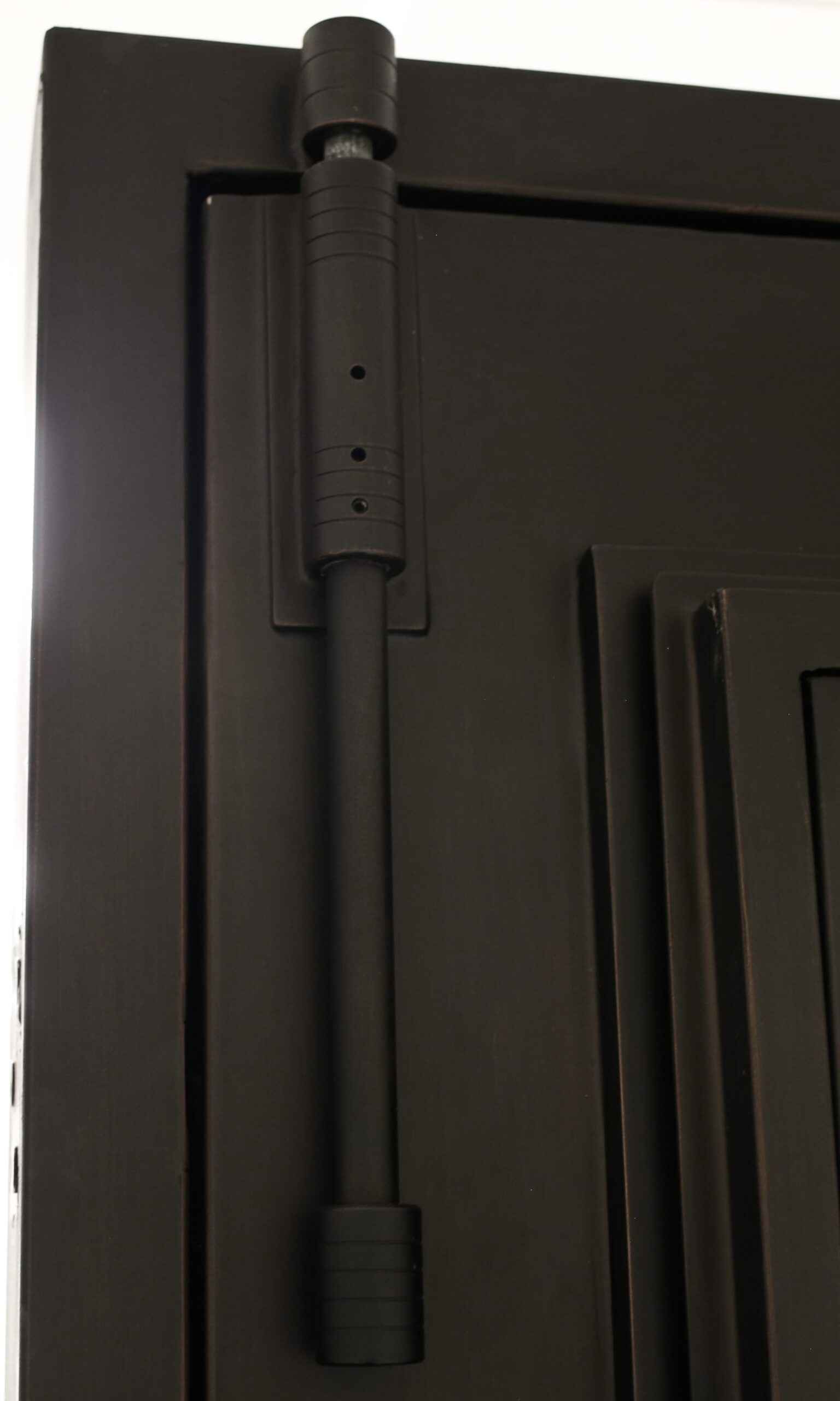 On the inside of a house, these bolts are on the top and bottom of the door. For a double door, there will be two hurricane bolts at the top and the bottom of the door. We are currently working on a three-point locking mechanism to provide the strength needed to withstand the wind forces and pressures of a hurricane.
